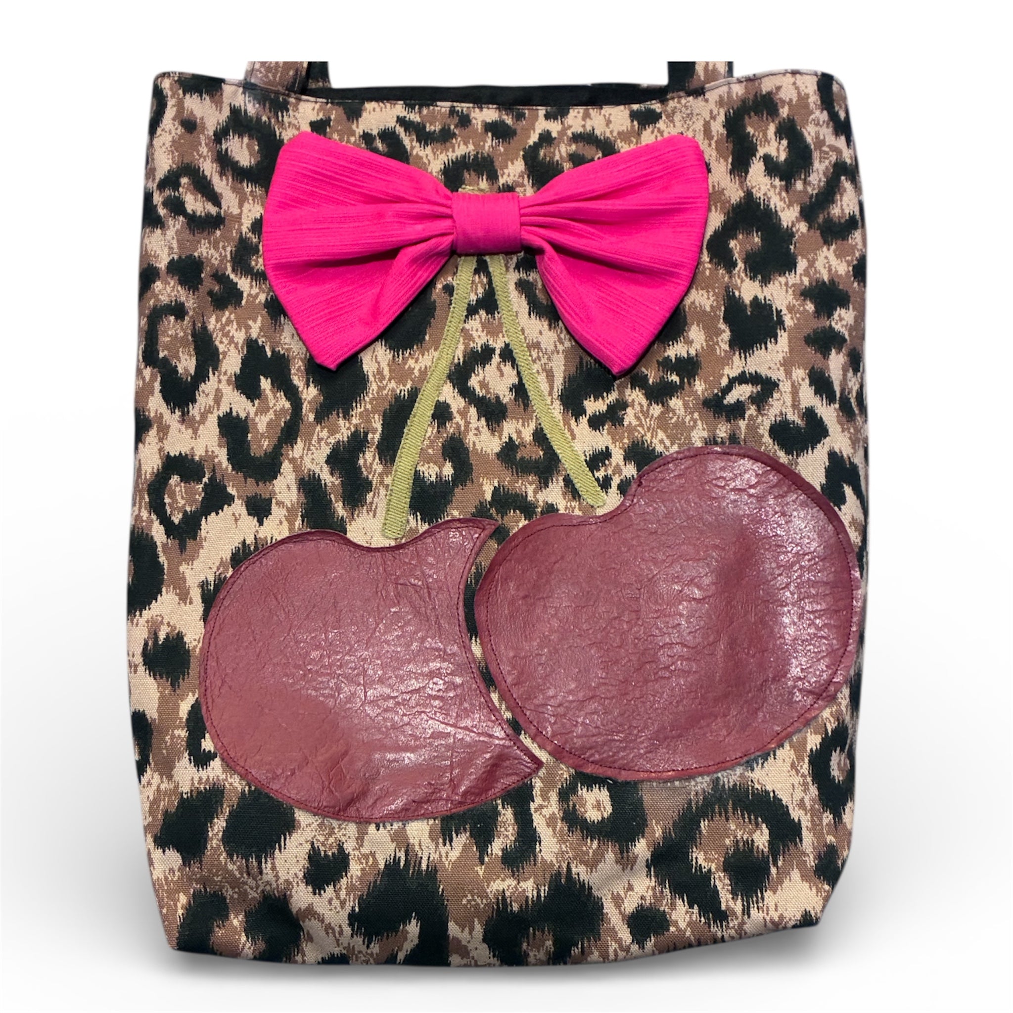 • Bold Design: Features a striking leopard print accented by a 3D hot pink bow and large cherry appliques.